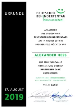 ✓ regelmäßige Unterstützungsleistung am Deutschen Behindertentag 2009 bis 2019.